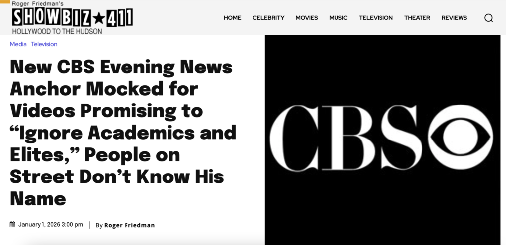 Instead of building trust through reporting, CBS turns its flagship anchor into a mildly humiliated content creator, chasing recognition like a mid‑tier YouTuber. People do not know his name. They do not know his face. They do not care. The network, rather than treating this as a problem to solve with serious journalism, packages the embarrassment as a cute little bit.