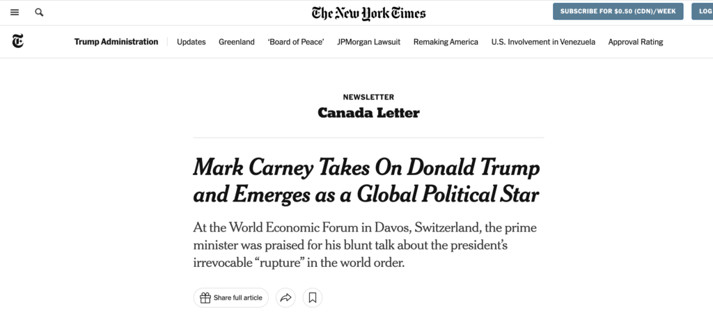 Carney would not have made this speech on a whim: he covertly signalled that Canada is going to find a better trading partner using their language in his speech, using “hegemony” no less than four times.