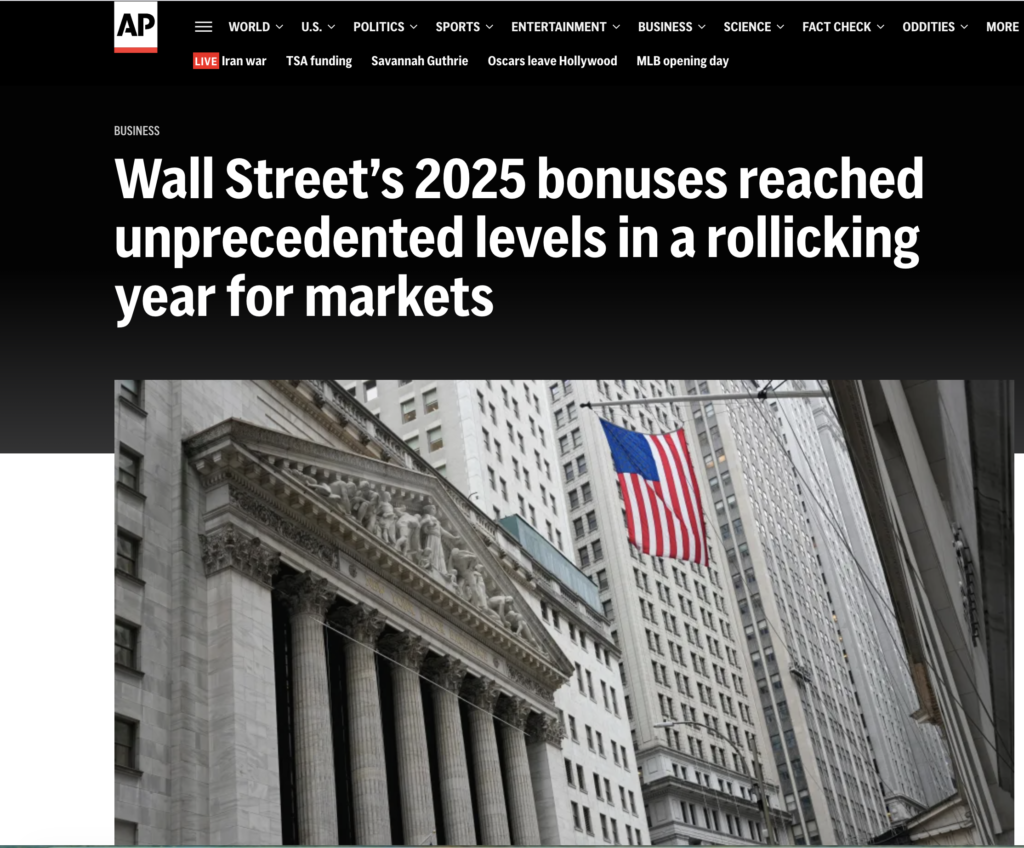 The “chaos of the Iran War” may destroy the economy, but those record bonuses will just increase.