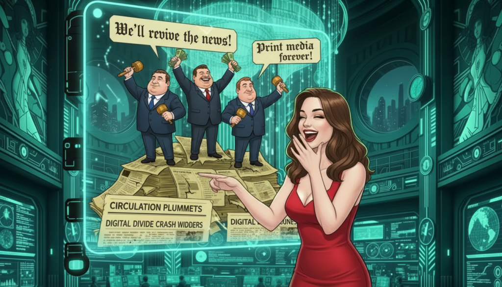 Billionaires don’t buy newsrooms because they love journalism; they buy them the way bored rich people buy exotic pets. They want something impressive pacing behind glass that they can point to at parties. Reporters become zoo animals on retainer, trained to roar on command at approved enemies and purr on cue for house patrons. The second those same reporters try to bite the hand that feeds them, they’re tranquilized with “restructuring,” “realignment,” and “cost efficiencies,” then quietly shipped off to the unemployment sanctuary.