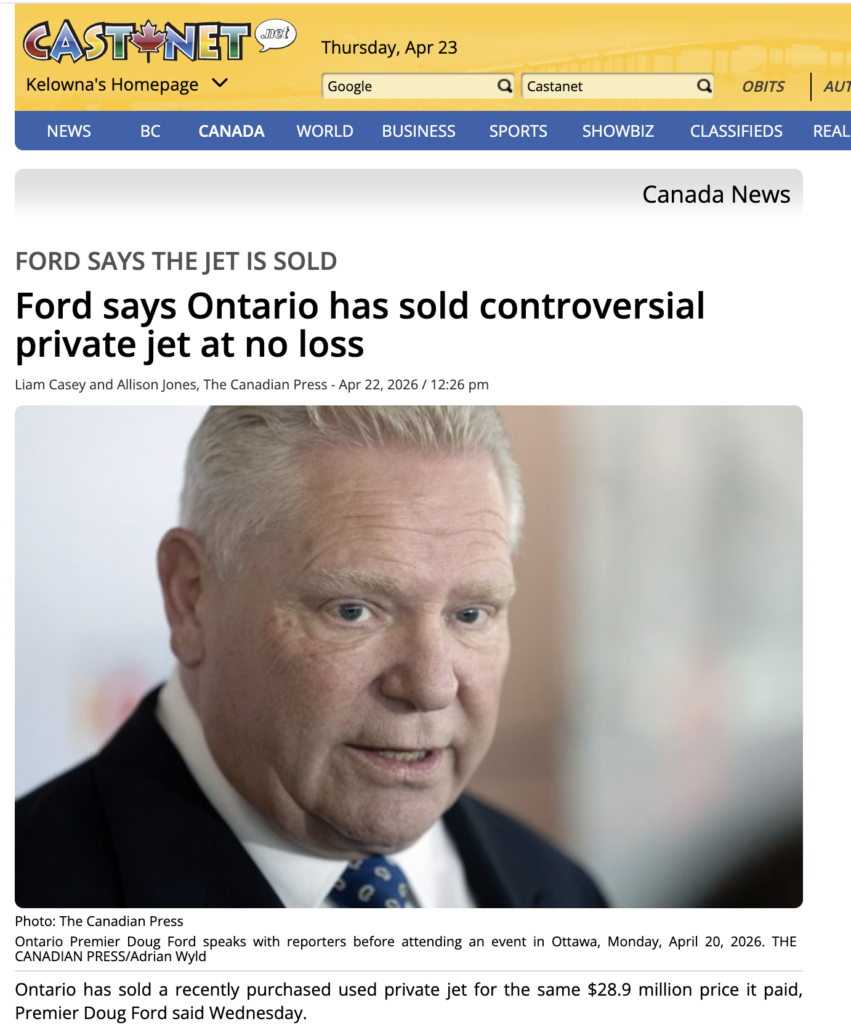 He wants to fly around on the taxpayer’s dime. Great. Who needs to put food on the table and gas in the car, when the premier gets his own wingy thingy. A little south of 30 million bucks. He had to walk back on it. His mojo doesn’t extend that far.